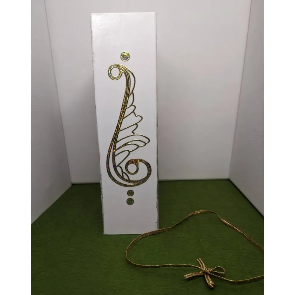 Mit Hilfe von Serviettentechnik und Klebeborte wurde diese Box verziert. Bei dieser Technik wird die Motivschicht von der Serviette getrennt, vorsichtig auf die Fläche geklebt und lackiert. Ein weiteres Gestaltungselement ist die goldene Klebeborte. Ein goldenes Gummiband umschließt die Geschenkebox. Die Innenflächen sind mit rosafarbenen Filz ausgelegt.