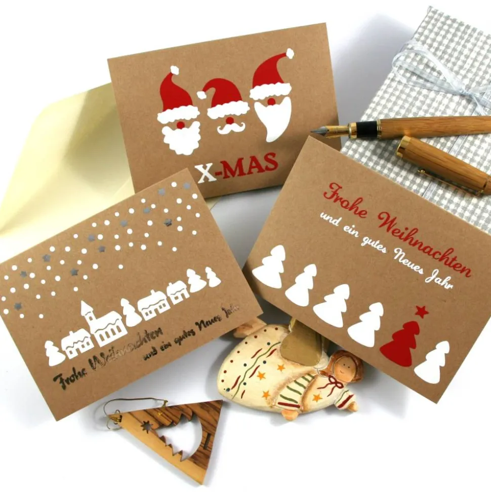 Kraftpapierkarte Din A6 mit Folienveredelung, Kuvert und Einlegefaltblatt