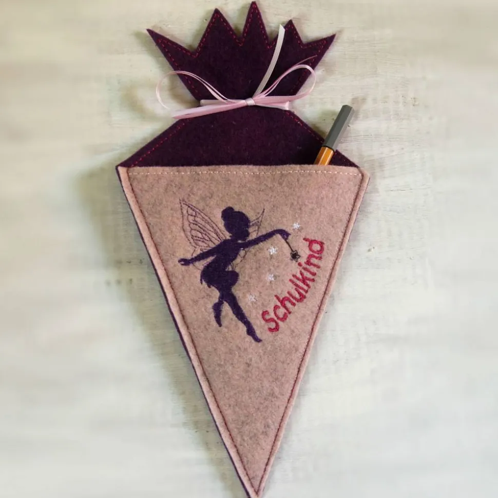 Kleine bestickte Schultüte „Elfe“ aus Wollfilz in drei Größen *individuell nach Wunsch angefertigt