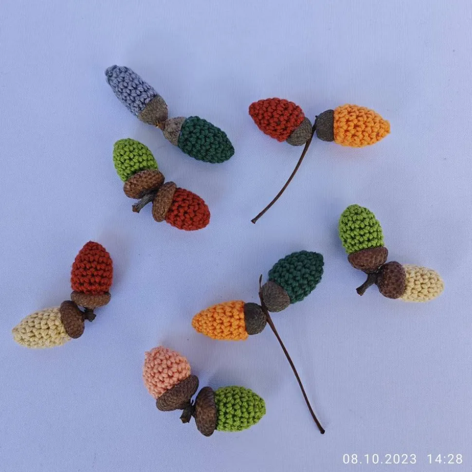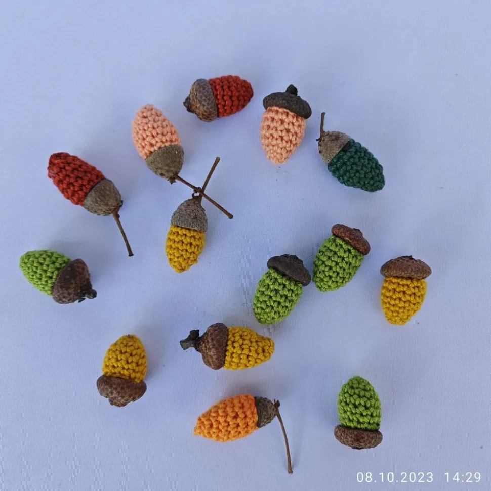 handgemachte, gehäkelte Eicheln lassen sich vielfältig viele Jahre wieder verwenden