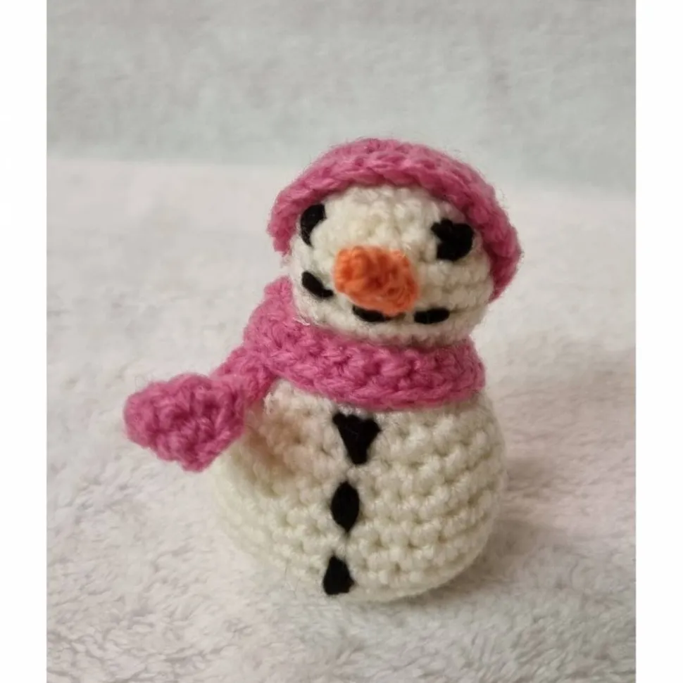 -Schneemann mit rosa Mütze 7,5 cm
