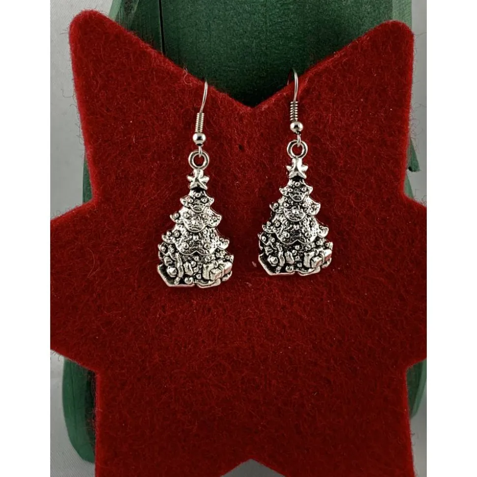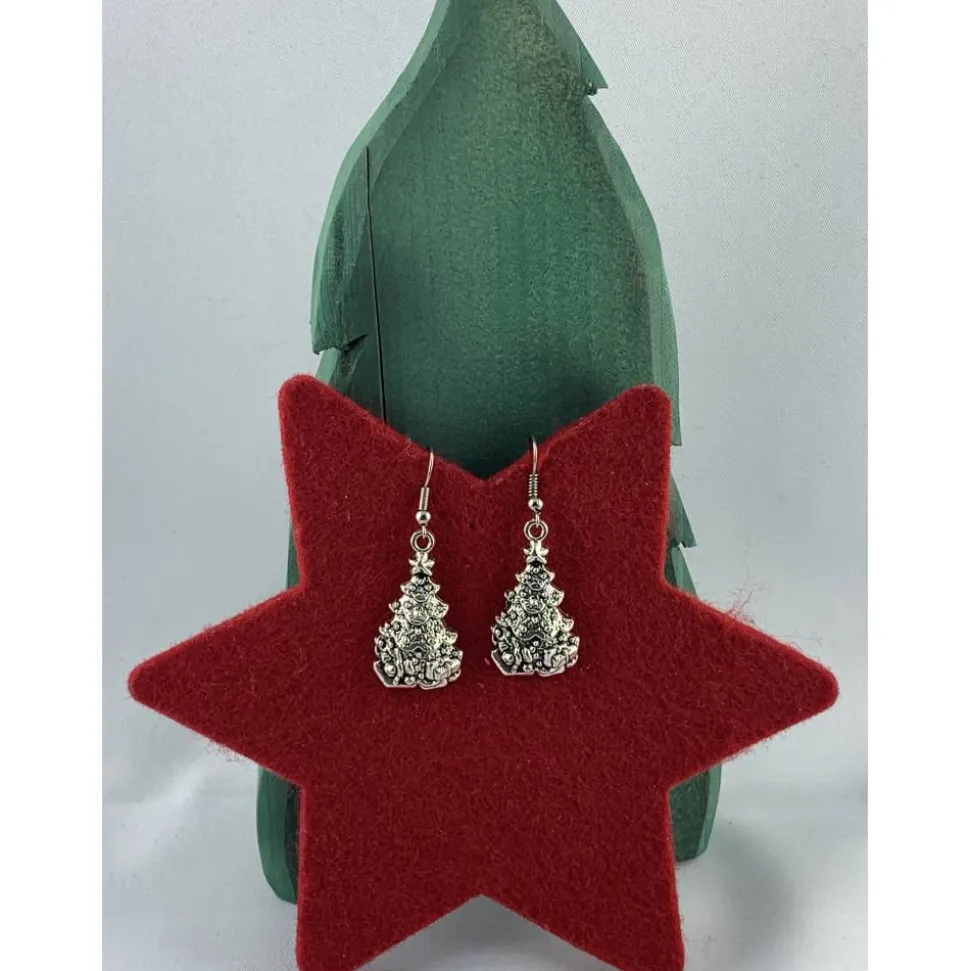 weihnachtliche Ohrringe – Weihnachtsohrringe – ein kleiner silberfarbener, total niedlich verschnörkelter Weihnachtsbaum / Tannenbaum als Ohrhänger – ideal fürs Büro, für die nächste Party, für die Weihnachtsfeier…. oder oder oder