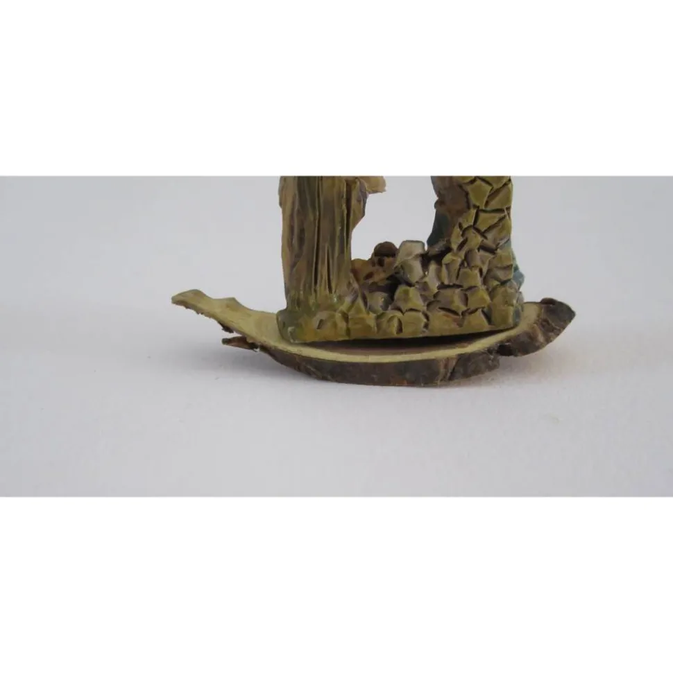 Die Krippe wird mit Heißkleber auf einer Astscheibe befestigt.