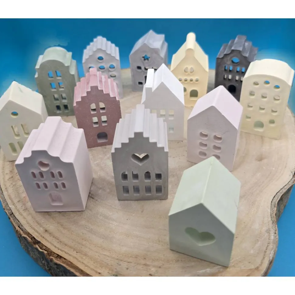 Entdecke einzigartige Lichthäuser aus handgegossenem Raysin in zarten Pastellfarben für stilvolle Deko und sanftes Licht!