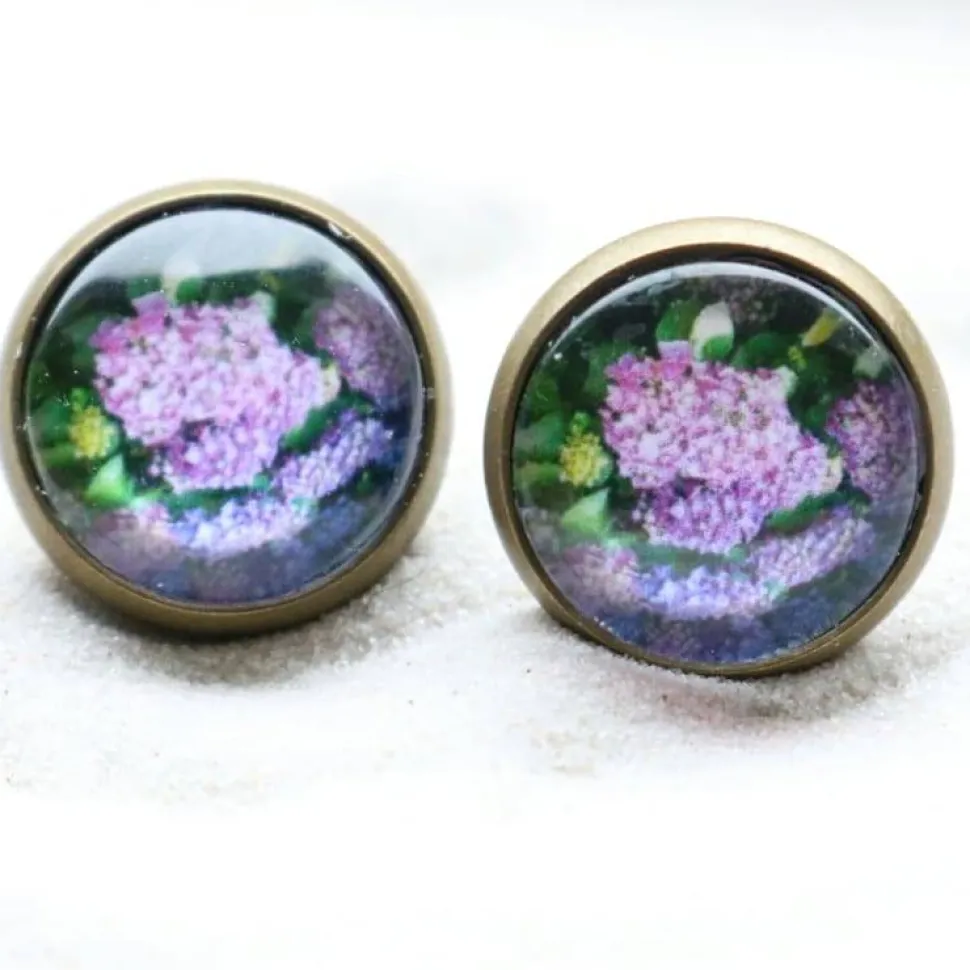 kleine 10mm große Glassteine in bronzefarbenen Steckern. Inklusive Silikonstopper für Ohrstecker