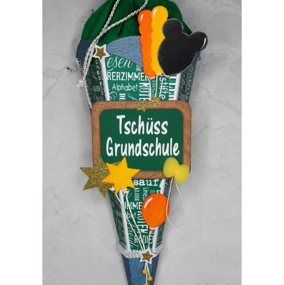 Diese kleine Schultüte ist ein ideales Abschiedsgeschenk zum letzten Grundschultag, zum Schulwechsel oder als Geschenketüte von Familie und Freunden für diesen besonderen Anlass!