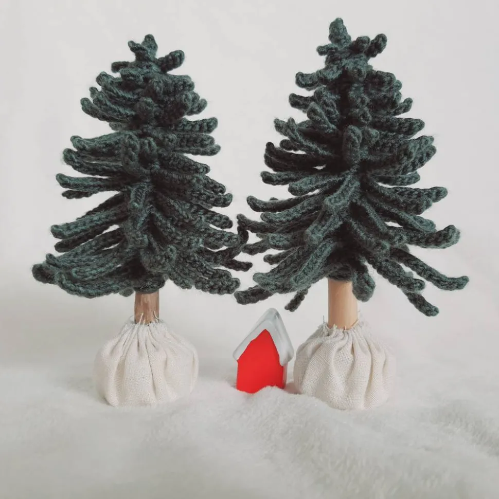 Die Baumkrone ist von Hand gehäkelt aus weichem Polyacryl.