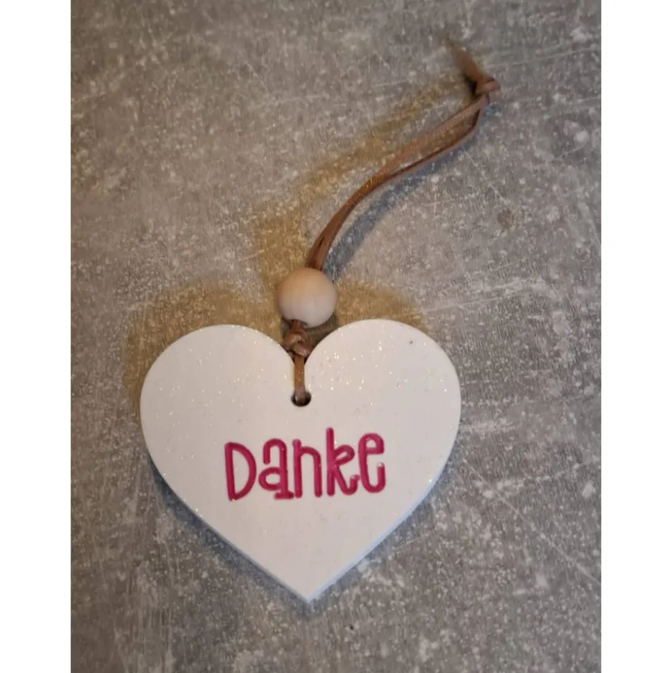 Kleiner Herzanhänger Danke aus Raysin – verleihe jedem Geschenk eine persönliche und liebevolle Note! Ob als Dekoration an einer Flasche, im Blumenstrauß oder kombiniert mit Schokolade, Pralinen oder Parfüm – deiner Kreativität sind keine Grenzen gesetzt, um stilvoll Danke zu sagen.