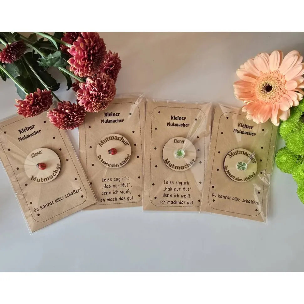 Erfreue dich an einem besonderen kleinen Mutmacher, gefertigt aus 3 mm Sperrholz. Dieses liebevoll gestaltete Accessoire überzeugt durch eine präzise Gravur und ist wahlweise mit einem Glücksstein oder einem Marienkäfer verziert. Ob als Geschenk, Talismann oder Dekoration – der kleine Glücksbringer bringt Freude und positive Energie in deinen Alltag. Die Kombination aus natürlichem Sperrholz und detailreicher Gravur macht jedes Exemplar zu einem Unikat.