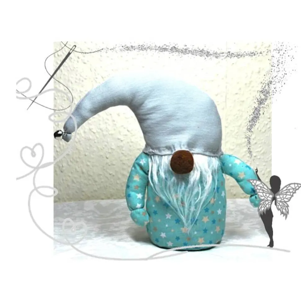 Der Wichtel ist 19cm groß, gefüllt mit Füllwatte und Dinkelkernen, wodurch er einen festen Stand bekommt.