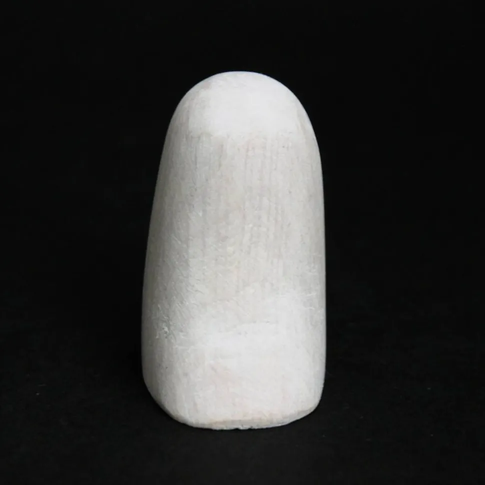 Es ist handgefertigt aus Weißbuchenholz und mit weißpigmentiertem natürlichen Holzöl behandelt. Die Augen wurden ganz am Ende mit einem Brennstab eingebrannt.