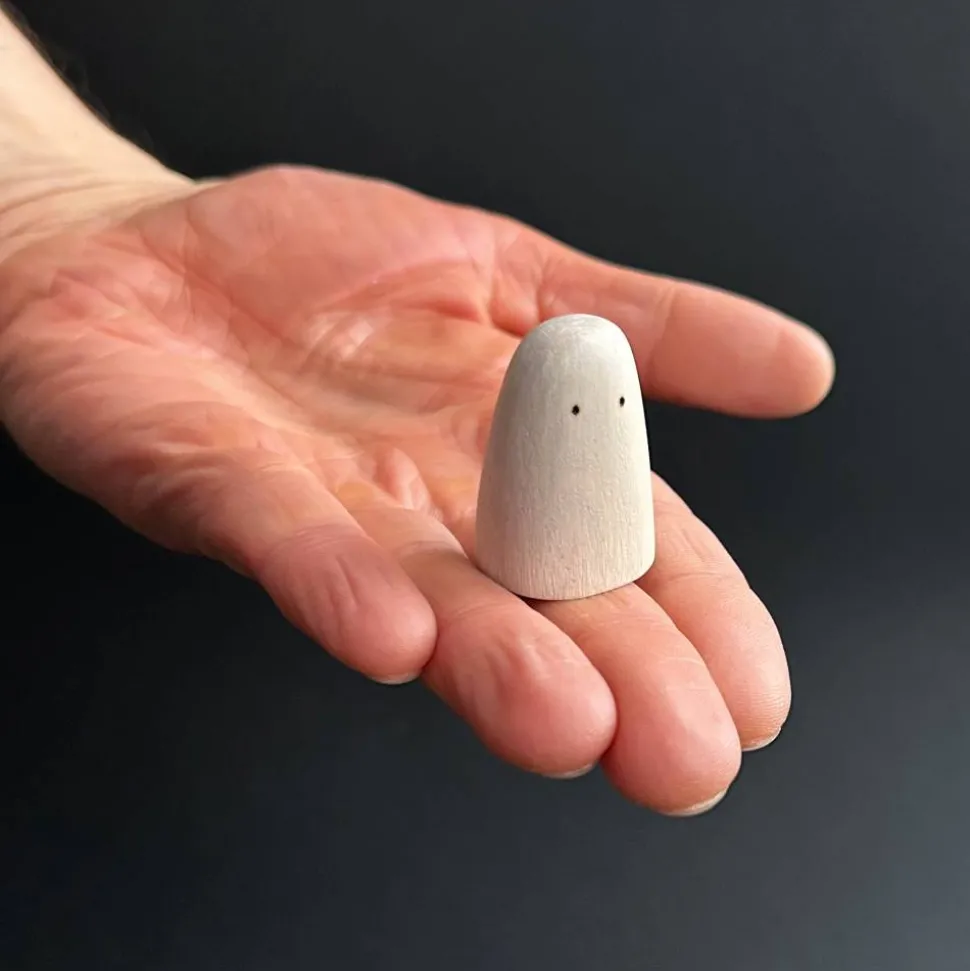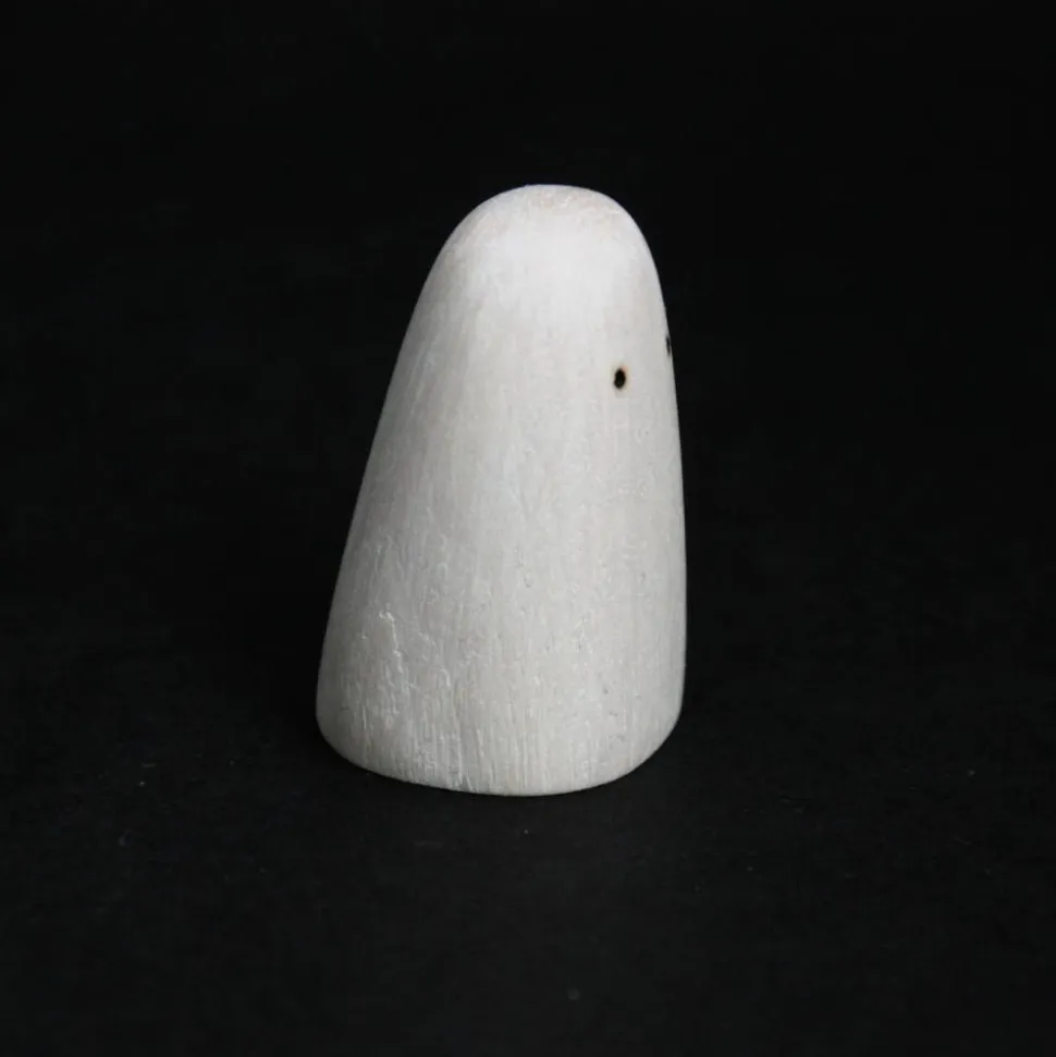 Es ist handgefertigt aus Weißbuchenholz und mit weißpigmentiertem natürlichen Holzöl behandelt. Die Augen wurden ganz am Ende mit einem Brennstab eingebrannt.