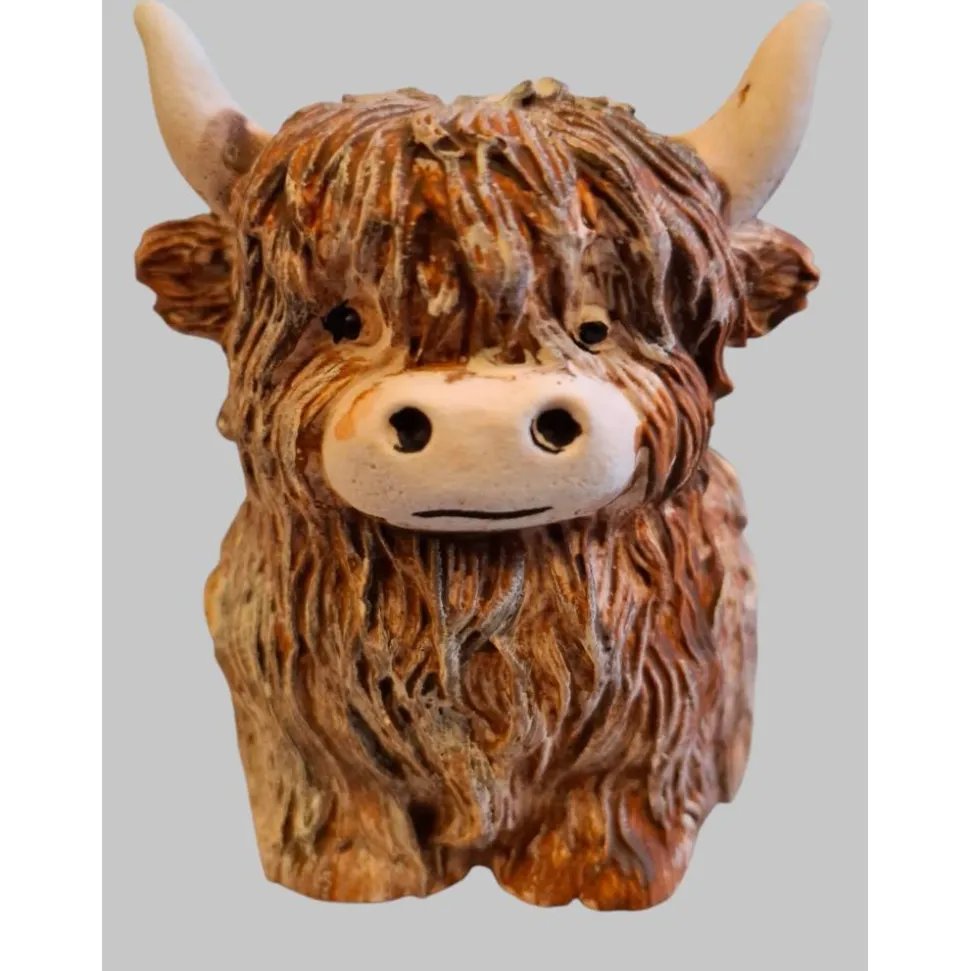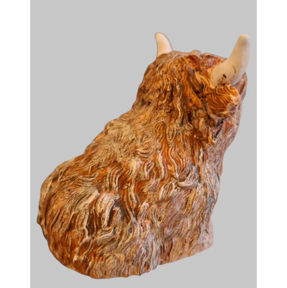 Jedes Hochlandrind wurde von Hand mit Acrylfarbe farblich gestaltet und nicht versiegelt. Nur für den Innenbereich geeignet.