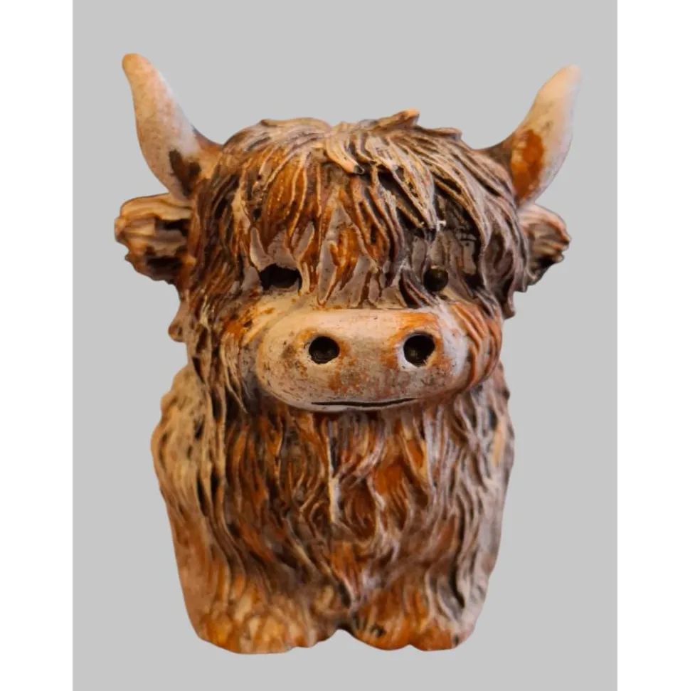 Jedes Hochlandrind wurde von Hand mit Acrylfarbe farblich gestaltet und nicht versiegelt. Nur für den Innenbereich geeignet.