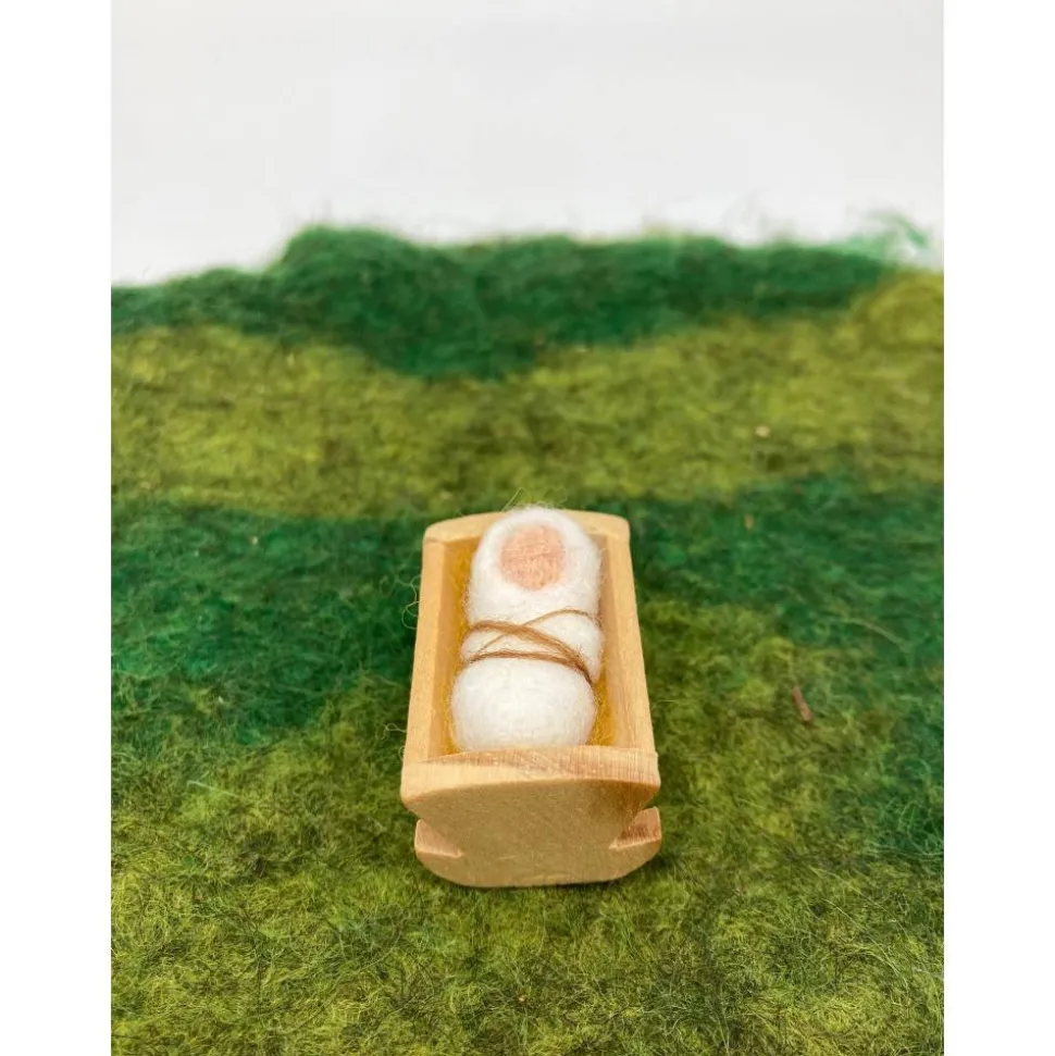 Kleines Jesuskind in der Krippe, Filzkrippe, Krippenfiguren aus Wollfilz