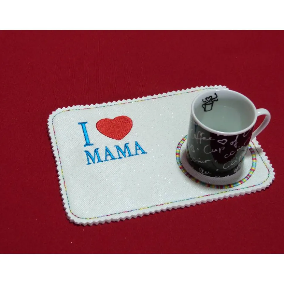 der kleine Tassenteppich sorgt für einen sauberen Tisch und kann abgewischt werden.
