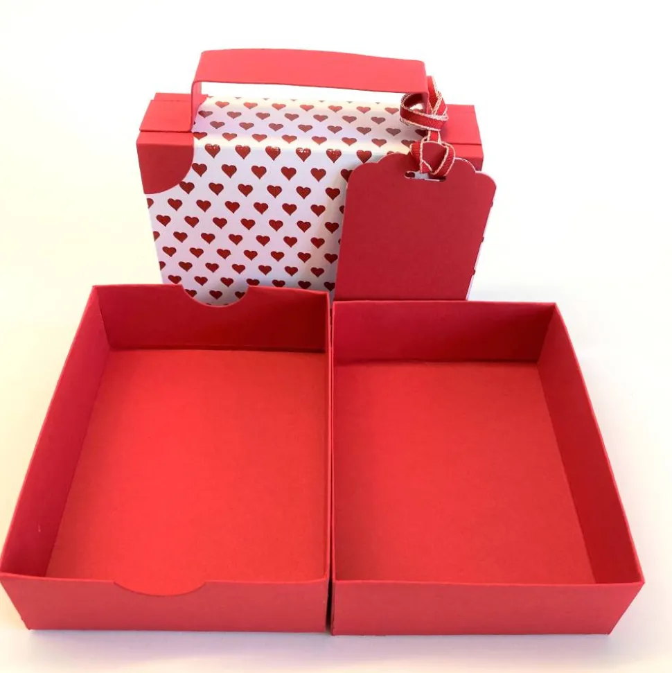 Die innere Schachtel besteht aus Deckel und Boden und kann vom Beschenkten weiterverwendet werden. Zwei unbeschriftete Kofferanhänger bieten Platz für deinen persönlichen Gruß.