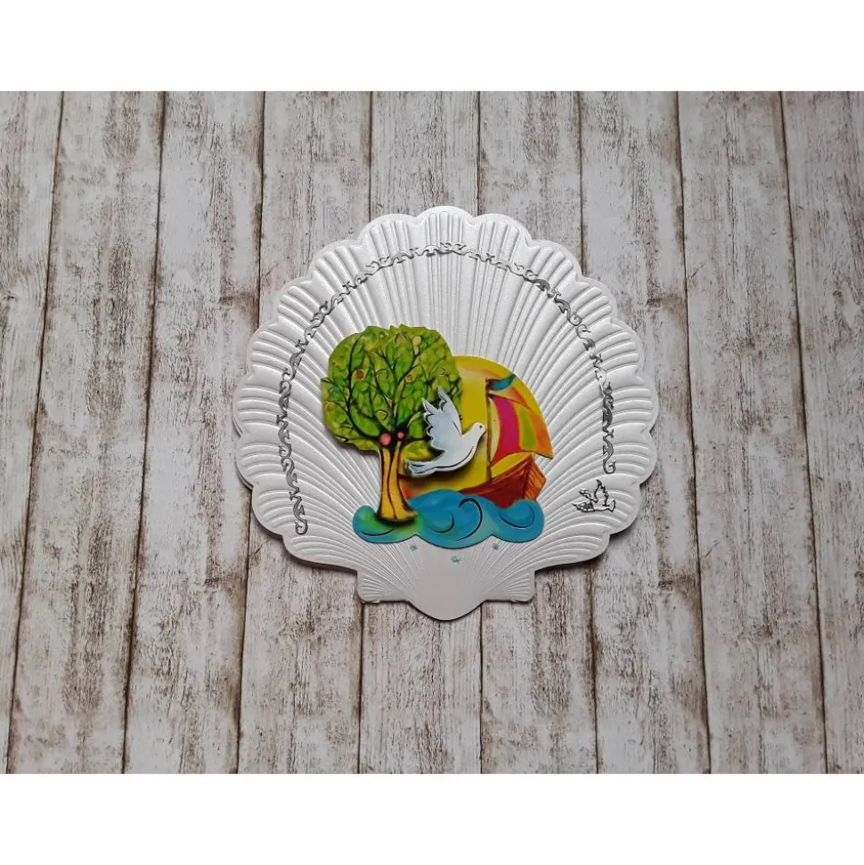 Kommunionkarte Baum , weiße Taube, Segelboot