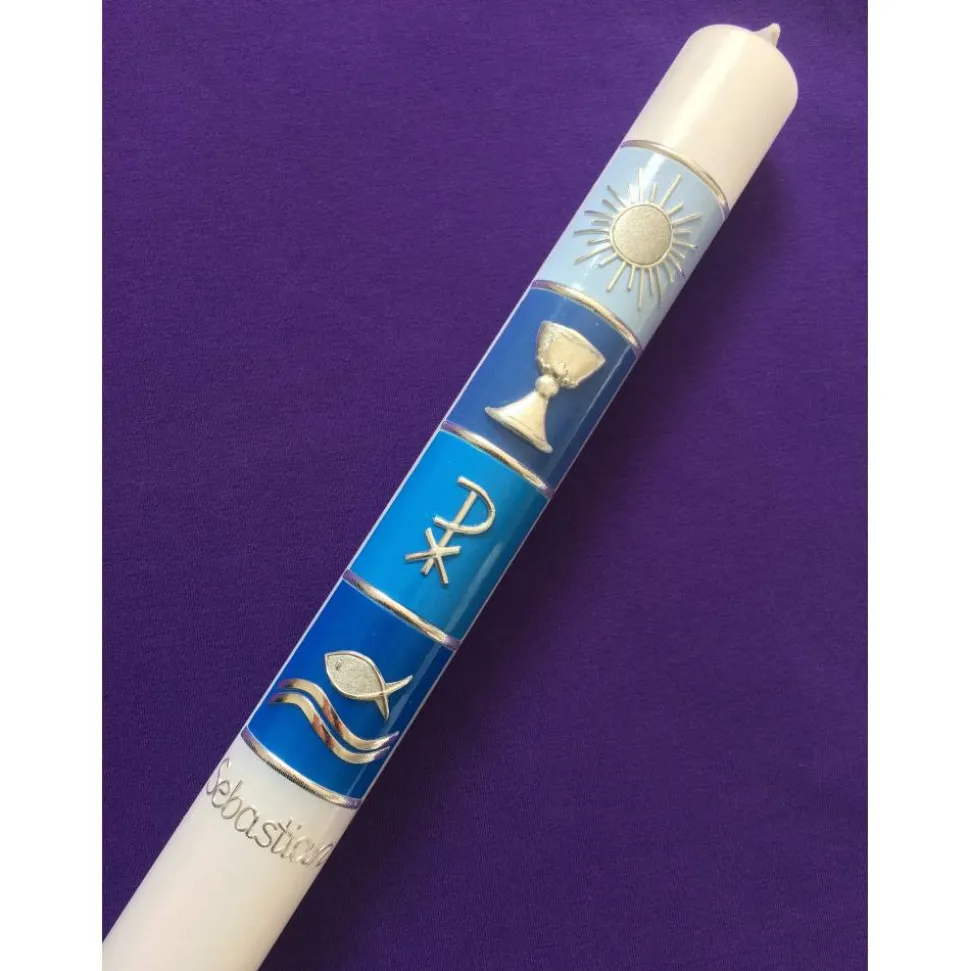 Die Kommunionkerze kann Ihren Wünschen entsprechend beschriftet werden.