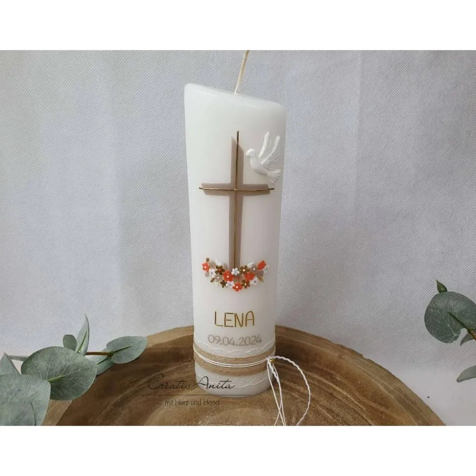 Gerne personalisieren wir die Kerze auch mit dem Namen des Täuflings und das Taufdatum. Bitte teilen Sie uns dies entsprechend mit.