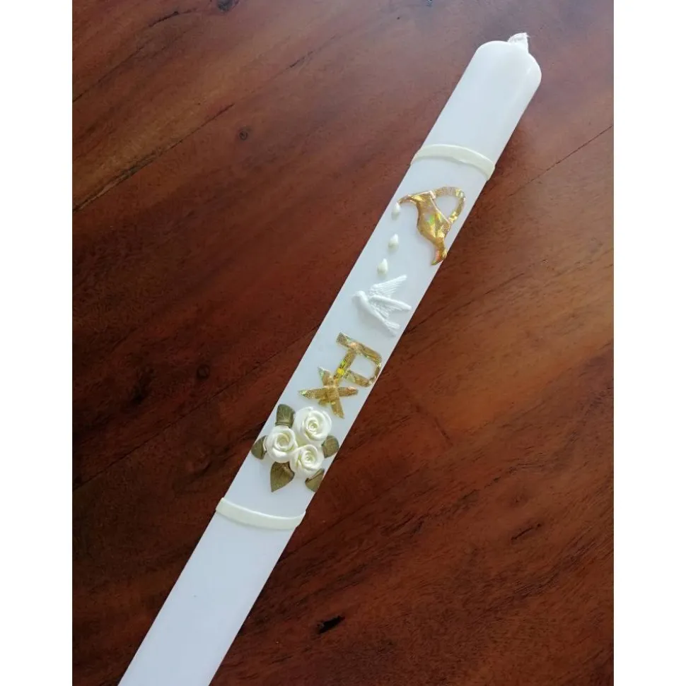 Die Verzierung auf der Kerze wird in liebevoller Handarbeit für Sie erstellt.