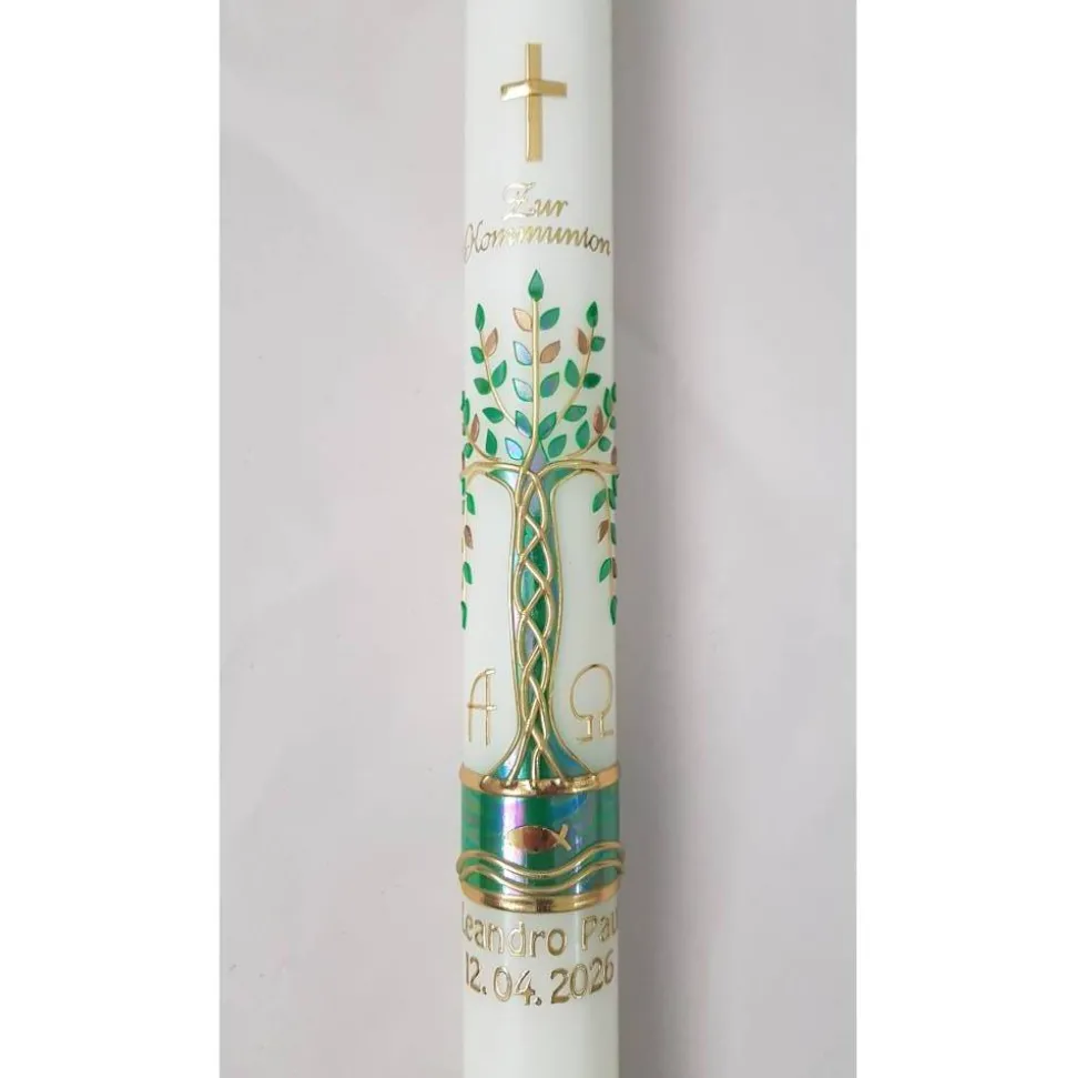 Kommunionkerze Taufkerze lang Lebensbaum Baum Jungen Mädchen Name Datum individualisierbar 400/40 mm
