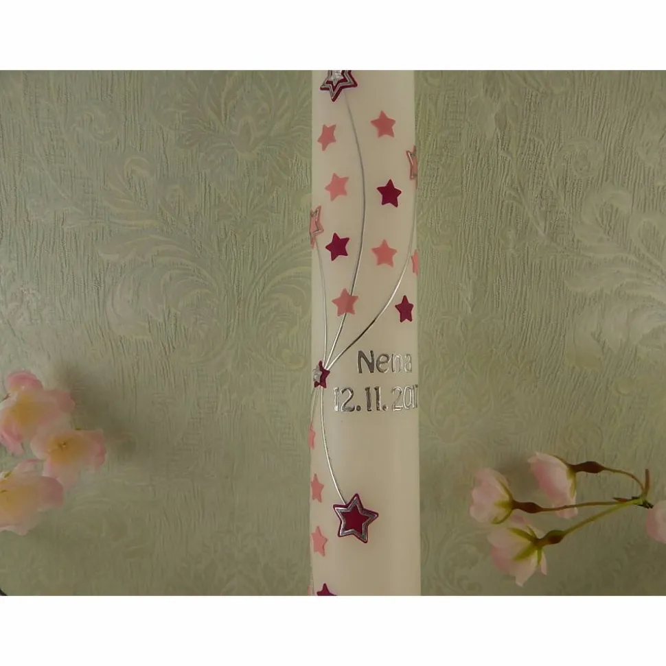 Kommunionkerze Taufkerze lang Mädchen Jungen bunt silber Sterne Name Datum individualisierbar