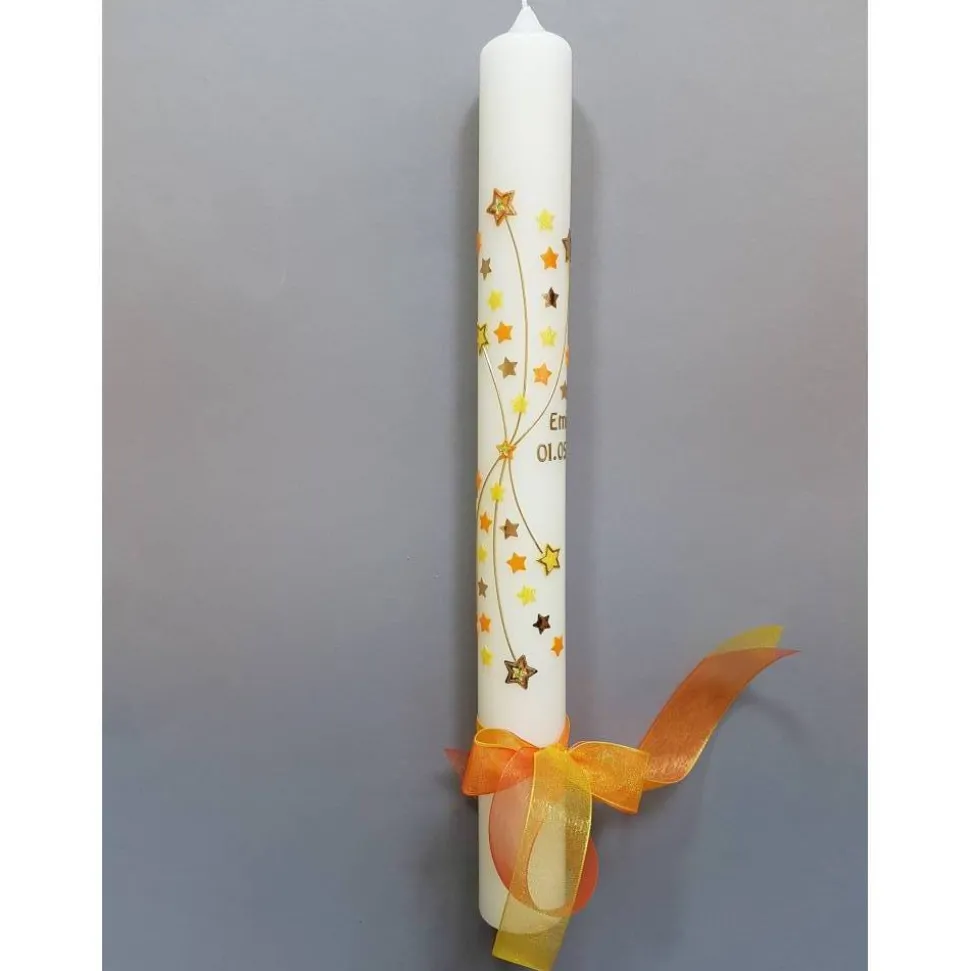 Kommunionkerze Taufkerze Sterne gelb gold Original Design KKR0307