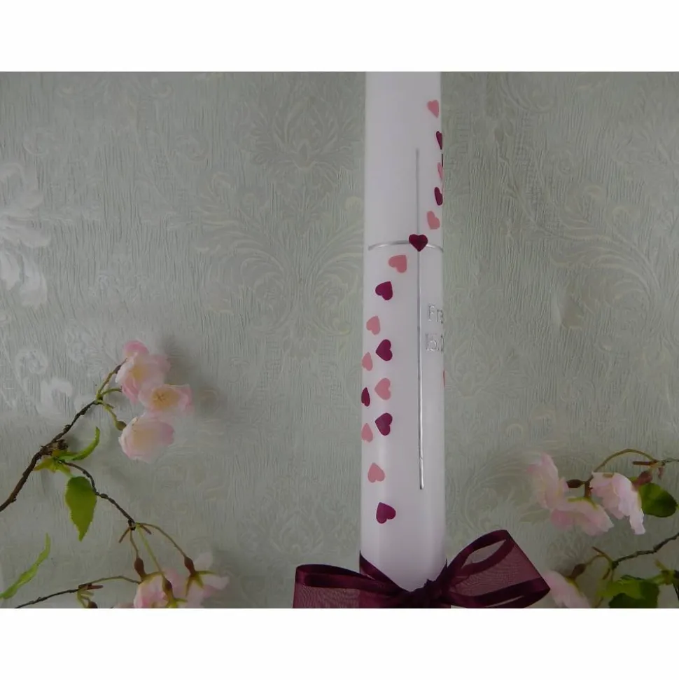 Kommunionkerze Taufkerze lang Mädchen Jungen rosa silber Herzen Name Datum individualisierbar