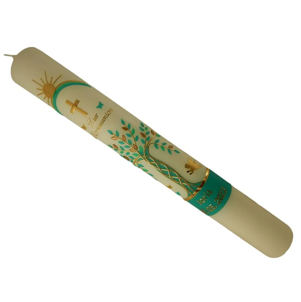 Kommunionkerze Taufkerze Lebensbaum grün gold Original Design KKR9830