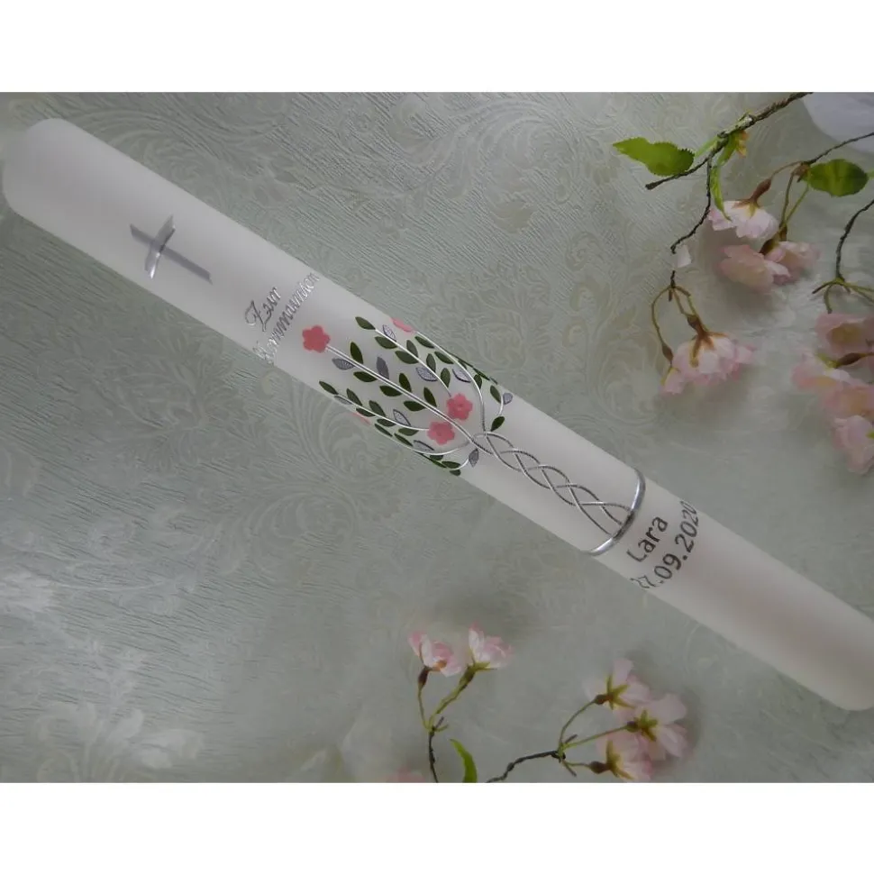 Die wunderschöne Kommunionkerze Taufkerze Baum Lebensbaum für Mädchen Jungen 400×40 mm
