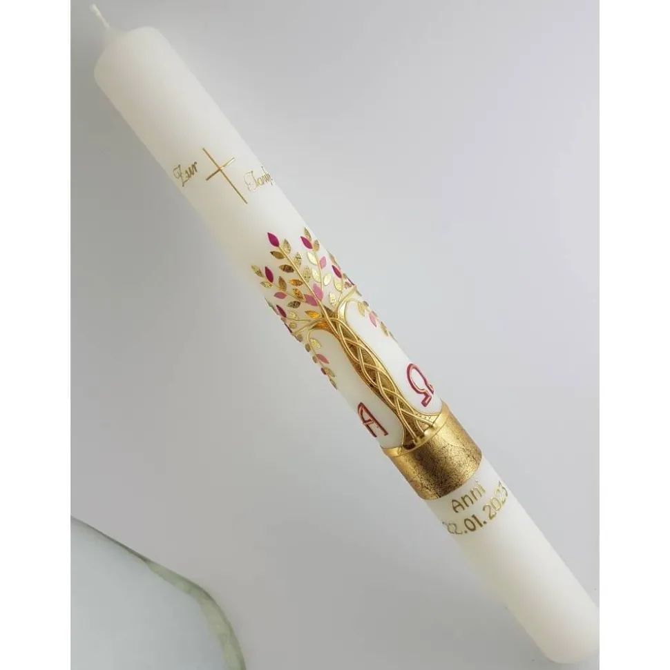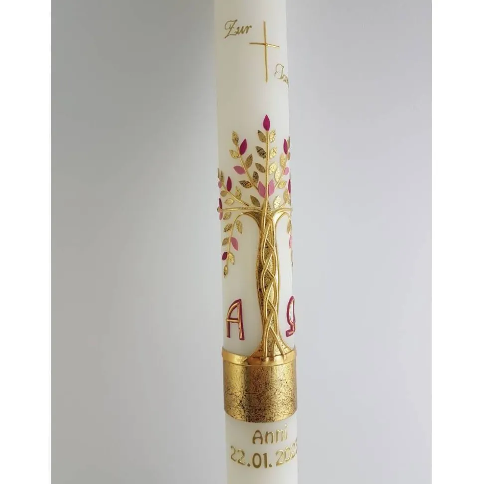 Kommunionkerze Taufkerze Lebensbaum rosa gold Original Design KKR8843