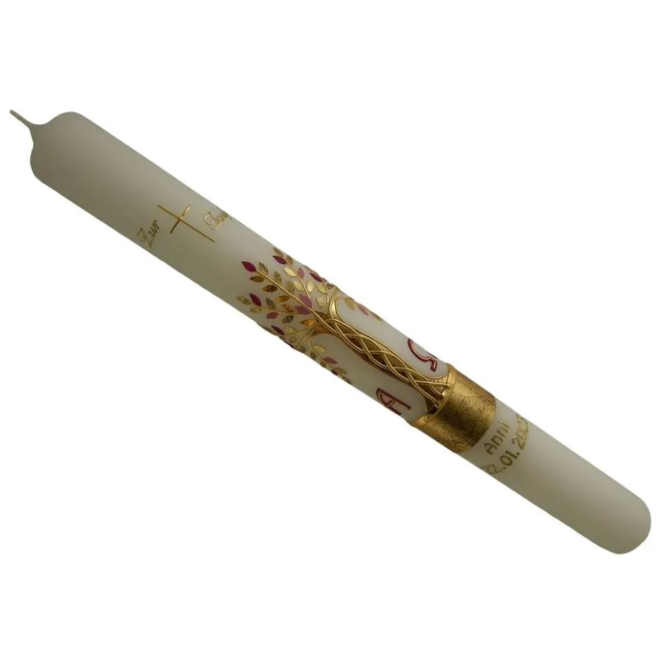 Die wunderschöne Kommunionkerze Taufkerze Baum Lebensbaum für Mädchen 400×40 mm