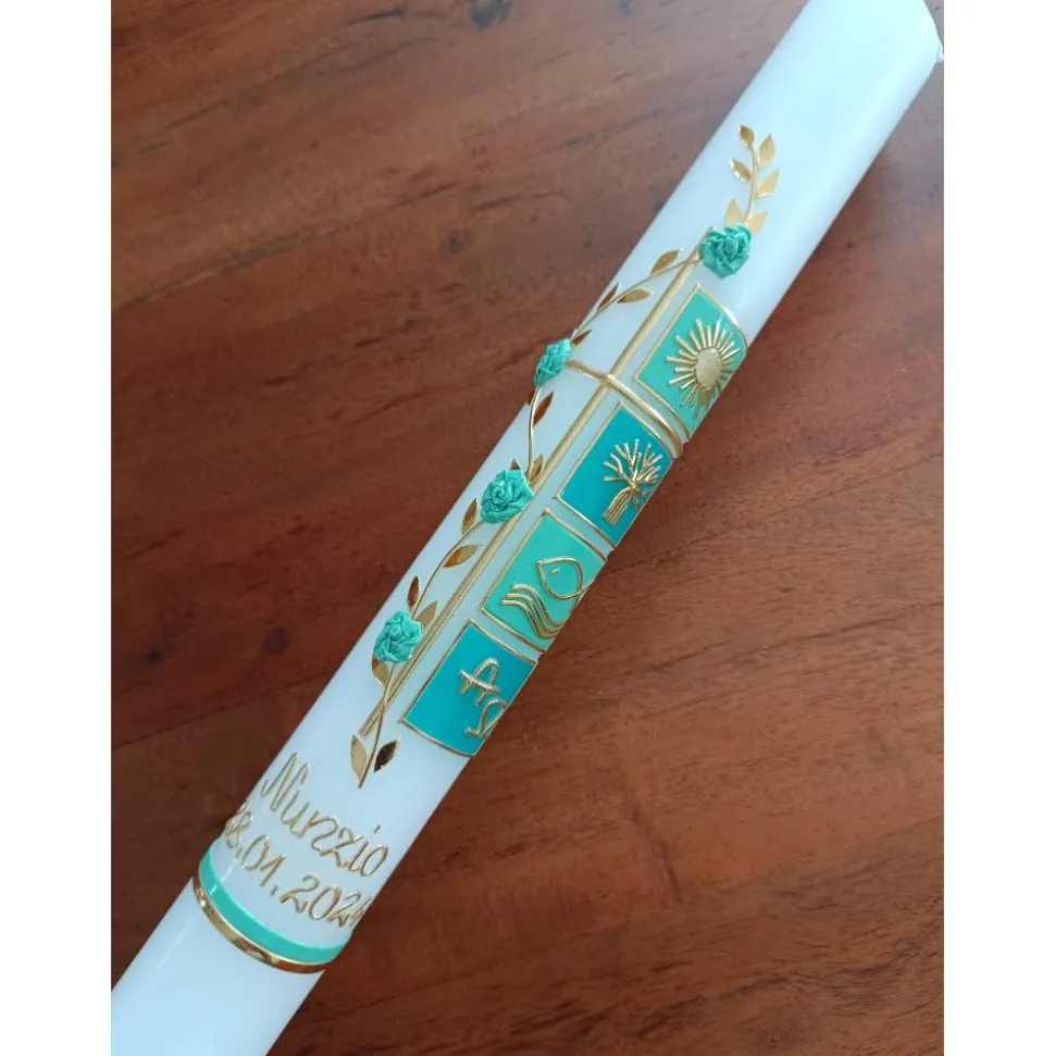 Die Verzierung auf der Kerze wird in liebevoller Handarbeit für Sie erstellt.
