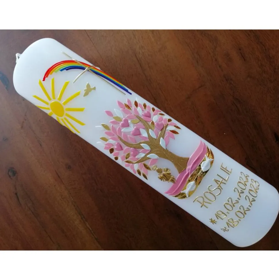 Bei unseren Baum-Kommunionkerze/Taufkerzen handelt es sich um hochwertige Handarbeit.