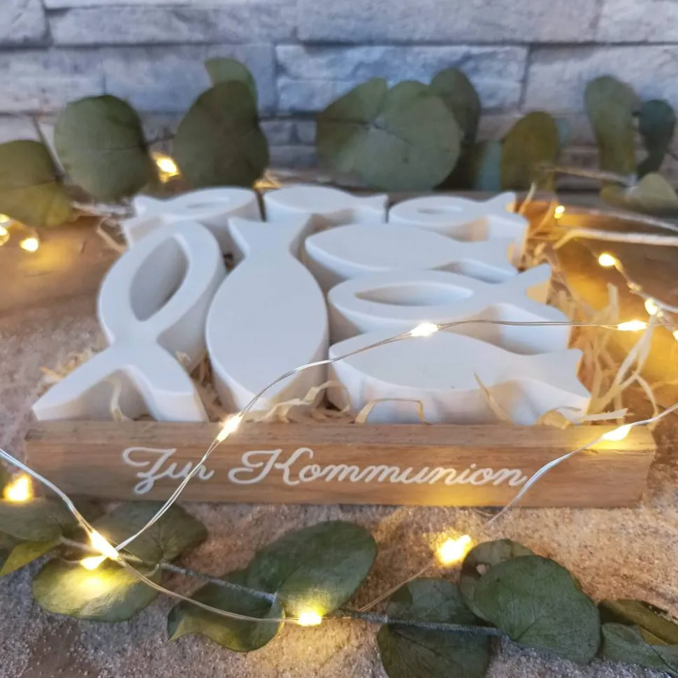 Kommunions Fische aus Raysin sind die perfekte Wahl für deine Tischdekoration zur Kommunion, Taufe oder Konfirmation. Die handgefertigten Fische verleihen deinem Fest einen einzigartigen, maritimen Charme und dienen zugleich als liebevolle Gastgeschenke.