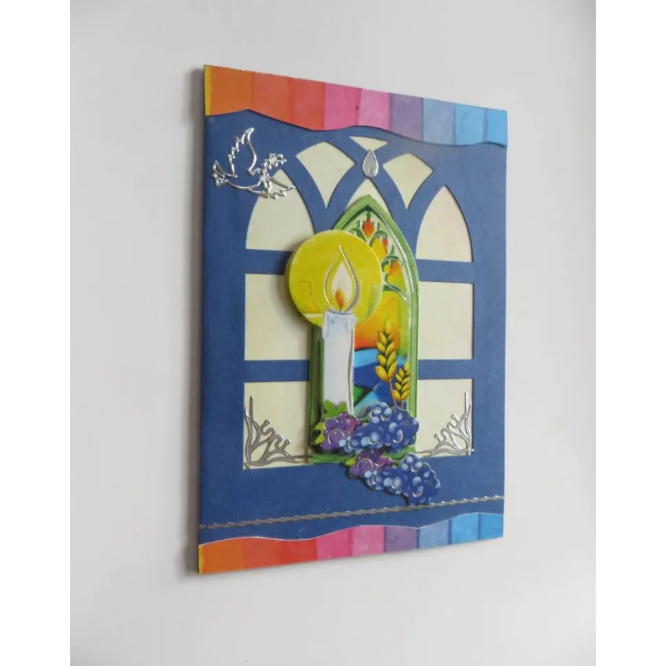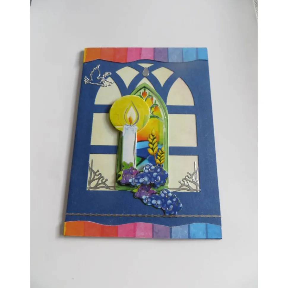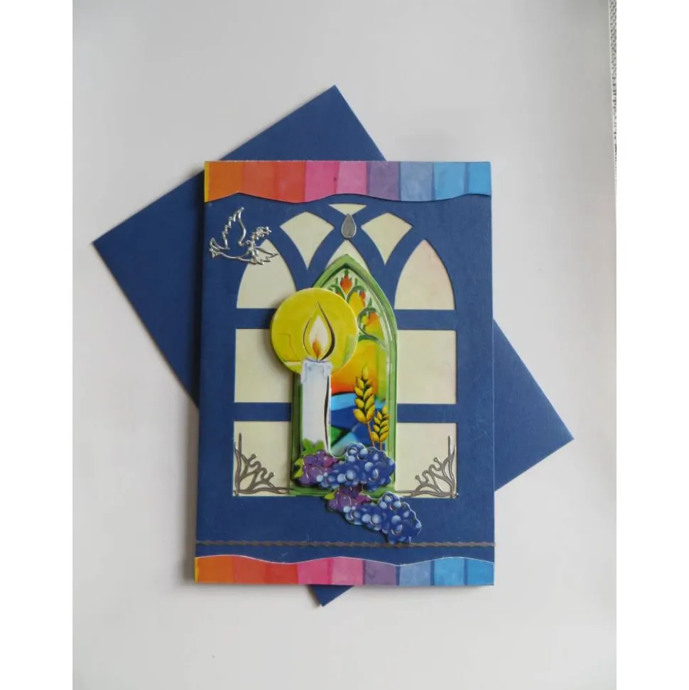 Mitten auf der Kommunionskarte eine wunderschöne große 3d Applikation. Ein Kreuz ,Der Kelch und die Trauben in einem Fenster. Für verschiedene Kommunionsthemen geeignet.Mitten auf der Kommunionskarte eine wunderschöne große 3d Applikation. Ein Kreuz ,Der Kelch und die Trauben in einem Fenster. Für verschiedene Kommunionsthemen geeignet.