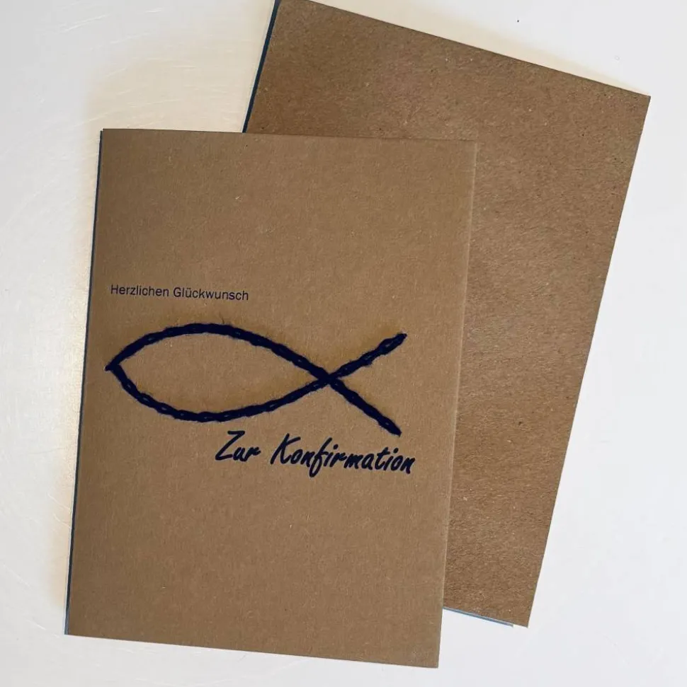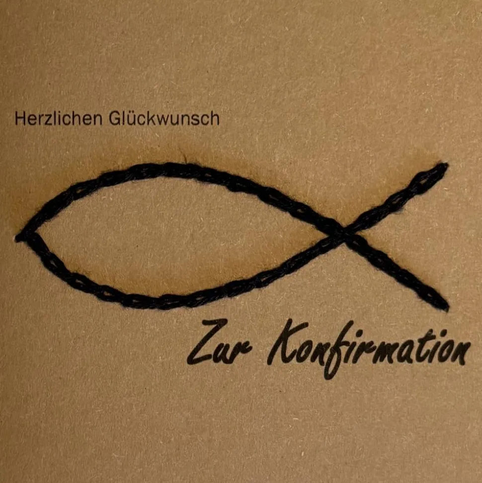 Papier mit aufgesticktem schwarzen Fisch