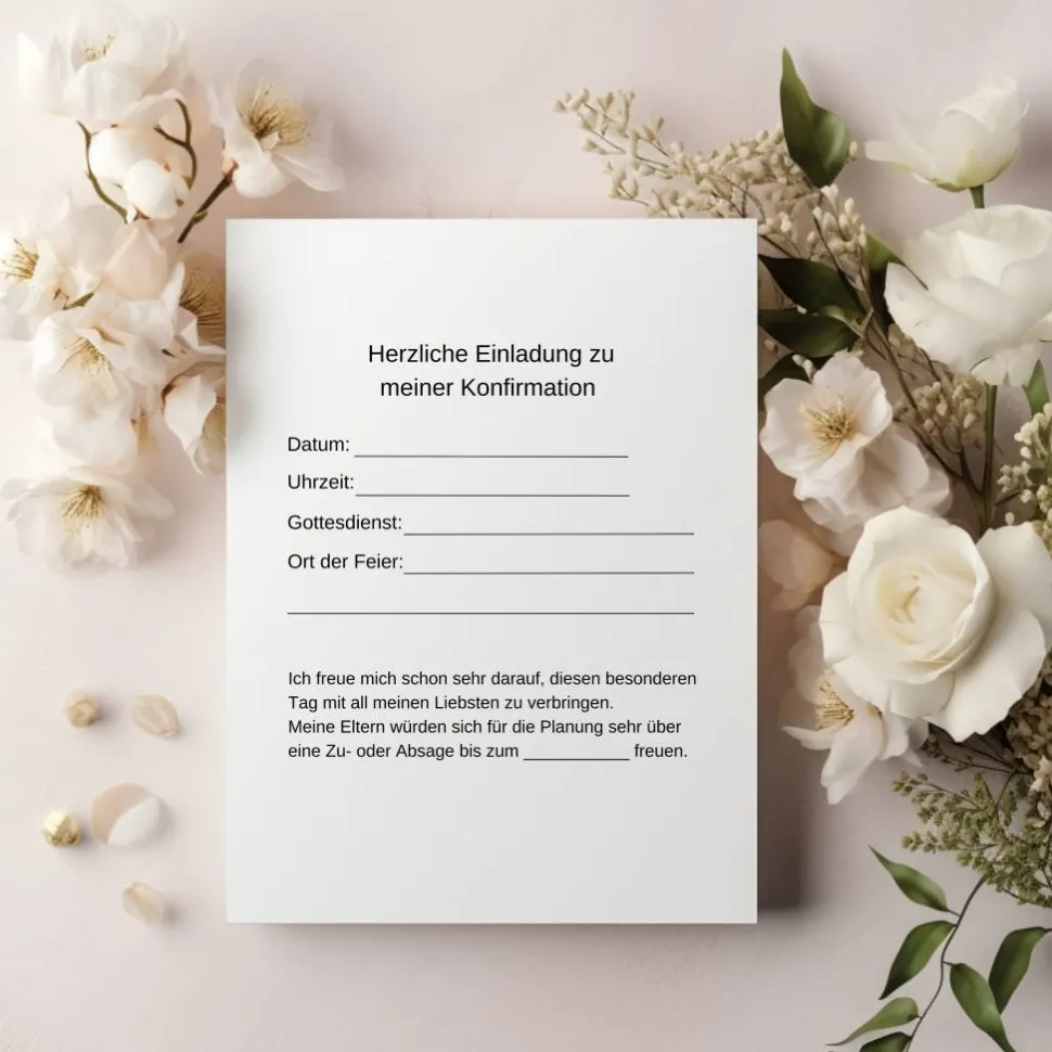 Diese schönen blumigen Konfirmationseinladungen im 10er-Set vereinen Tradition, Ästhetik und Funktionalität – ideal für alle, die ihre Konfirmation mit Stil, Herz und einem Hauch floraler Leichtigkeit ankündigen möchten.