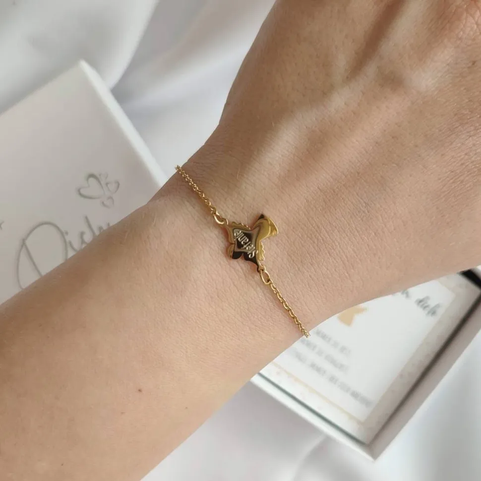 Diese einzigartige Engel Armband aus Edelstahl wird jedem Mädchen und Jungen ein strahlendes Lächeln auf die Lippen zaubern. Die Kombination aus dem personalisierten Schutzengel Armband, der bedruckten Konfirmation Karte und der edlen „Für Dich“ Geschenkbox machen das Armband zu einem sehr persönlichen Konfirmationsgeschenk.