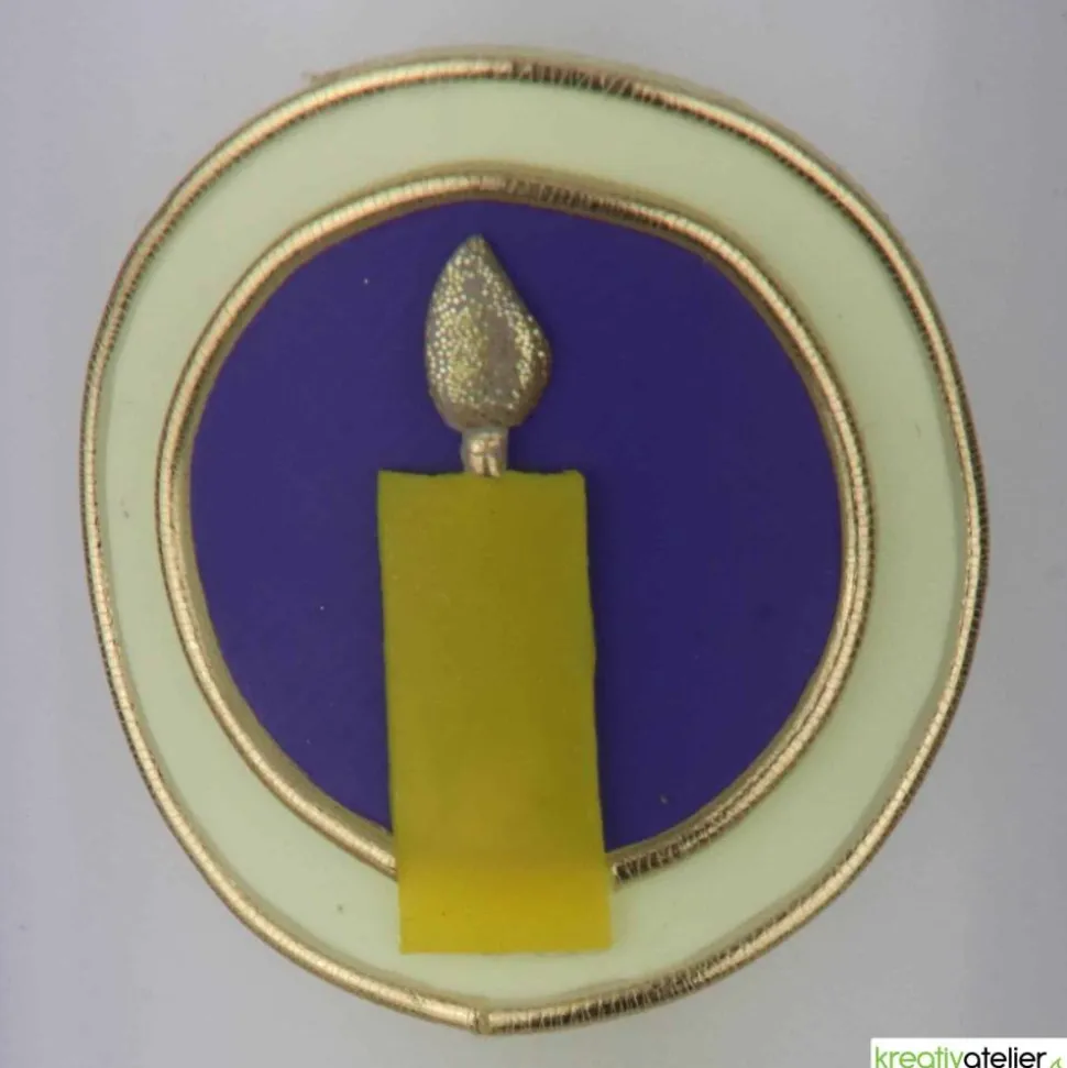 Unterhalb der letzten Kachel mit dem Fisch kann die Konfirmationskerze mit einem Namen und dem Konfirmationsdatum personalisiert werden. Ich verwende keine Folien für die Beschriftung. Diese erfolgt mit Echtwachs. Zur Beschriftung gelangen Sie hier.