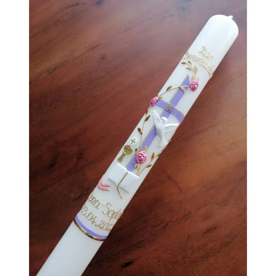 Größe: Die Kommunionkerze / Taufkerze Kreuz ist 40 x 4 cm groß.