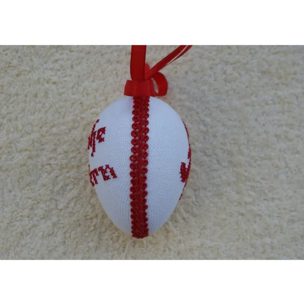 Kreuzstich Osterei Handarbeit gestickt  Oster Motiv   9cm, rot weiß,