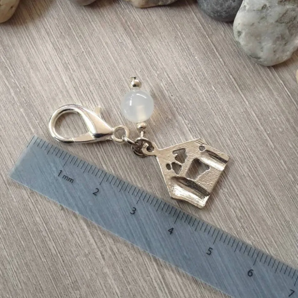 Der kleine Krippenstall besteht aus Metall und misst 1,8 cm in der Höhe. Dank des Spaltrings ist er sicher an einem Karabiner (Höhe: 2,1 cm) befestigt, sodass du ihn bequem an Schlüsselbund, Tasche oder Rucksack anbringen kannst.