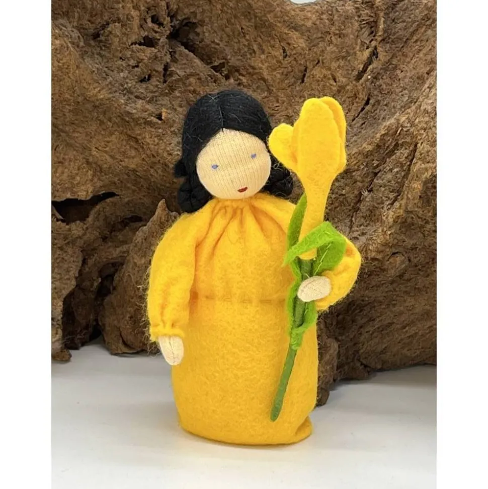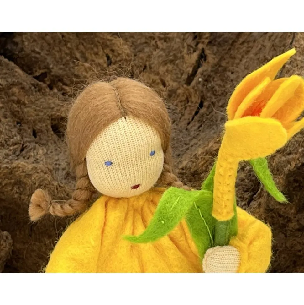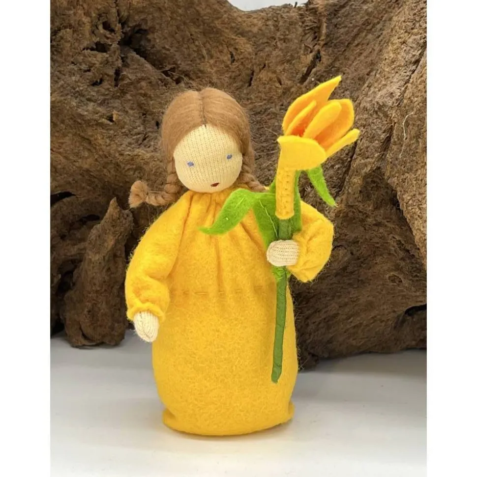 Das Püppchen ist unten geschlossen und für einen guten Stand unten mit feinem Dekokies und der Rest mit reiner, süddeutscher Merinowolle gefüllt.