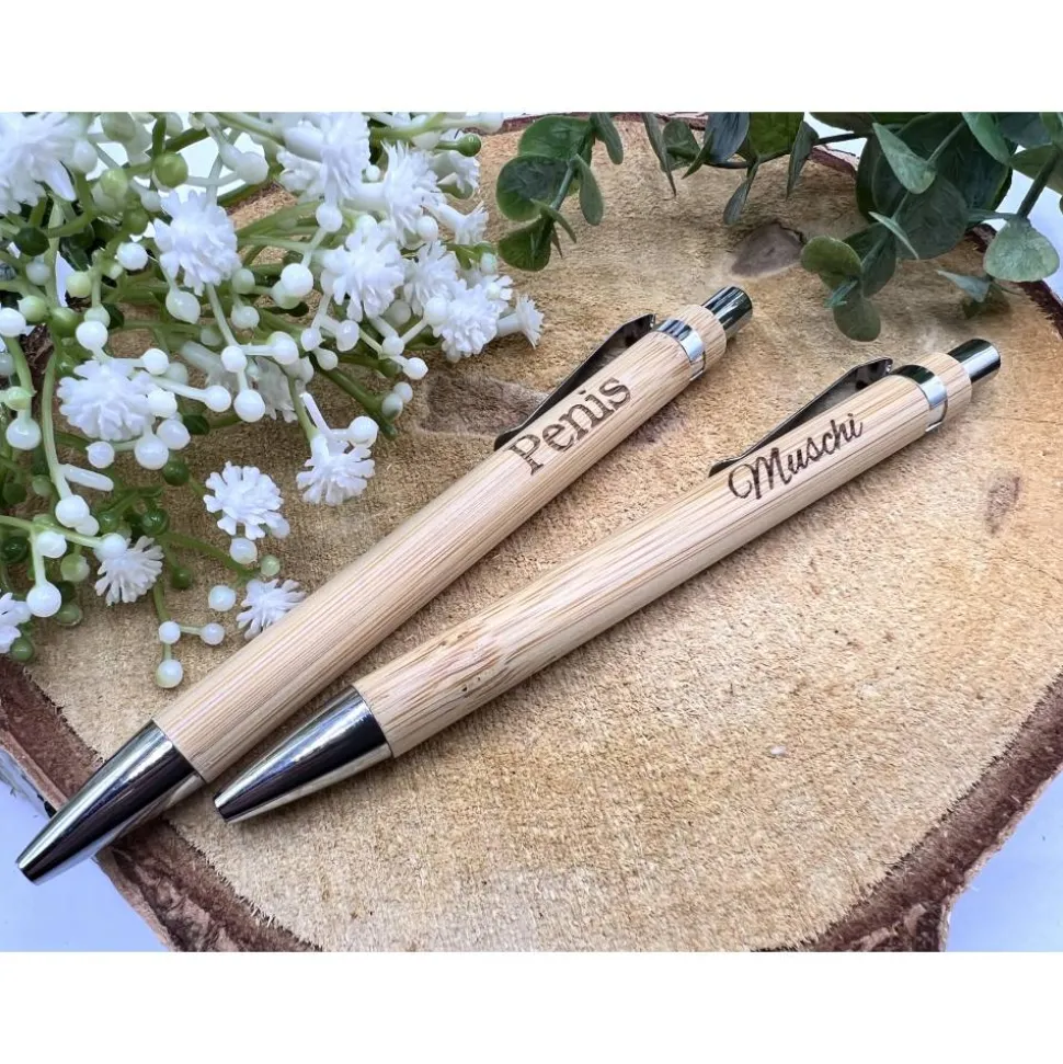 Kugelschreiber aus Bambus inkl. Clip. Der Kuli schreibt schwarz.