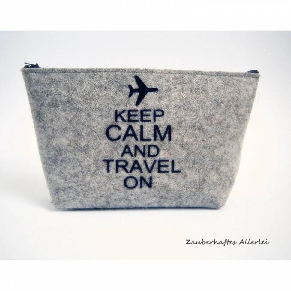 Das Motiv besteht aus dunkelblauer Flockfolie. Verschlossen wird alles mit einem Reißverschluss.