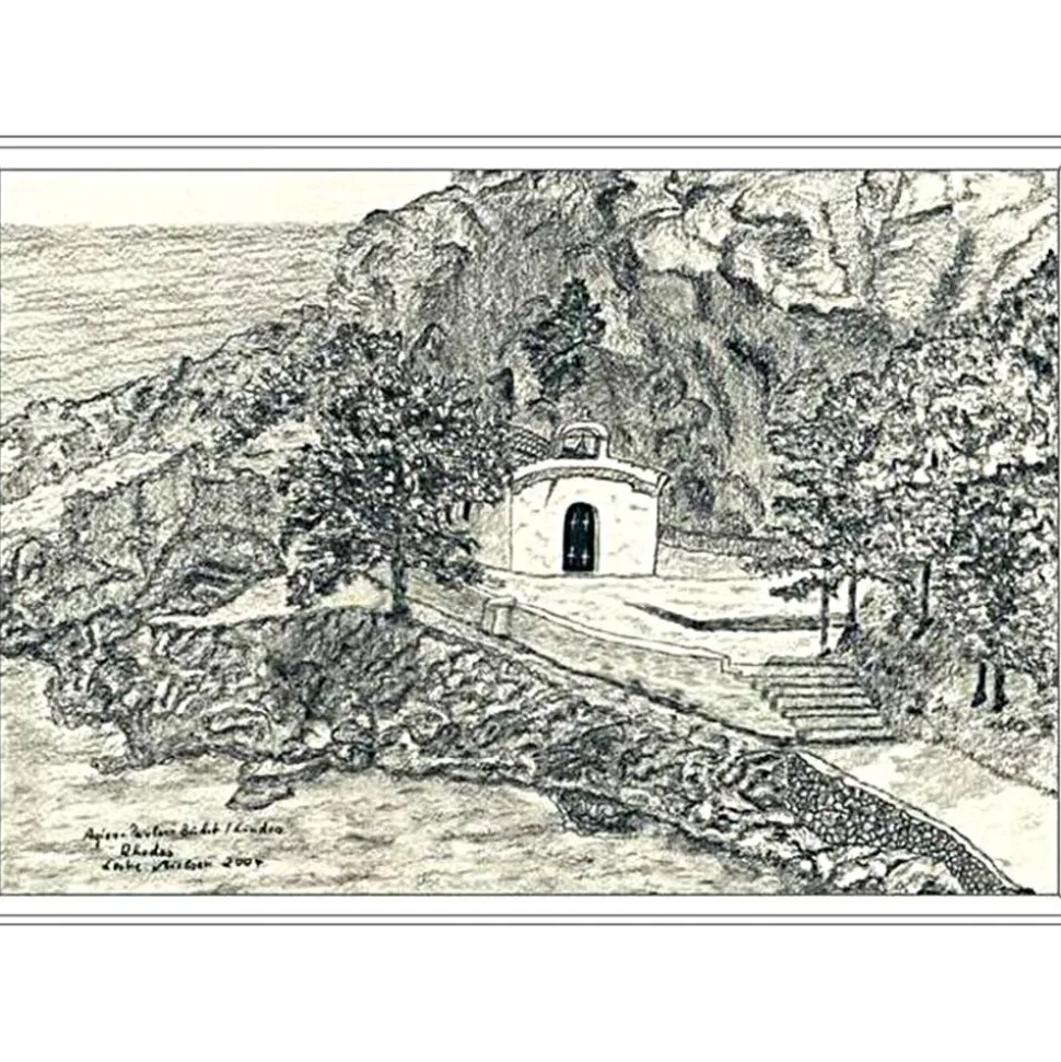 Diese Bleistift-Zeichnung beschreibt sehr schön die Stimmung in der griechischen und am Mittelmeer gelegenen Agios-Pavlos-Bucht.
