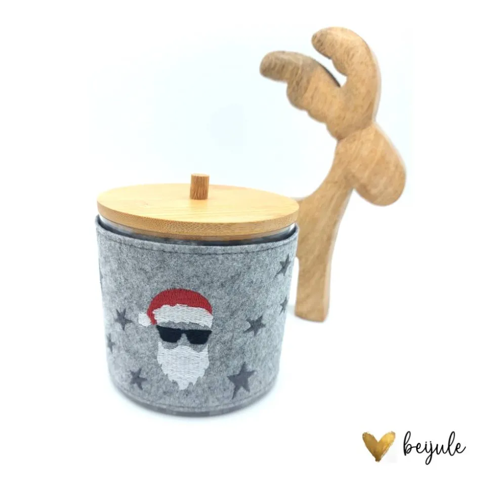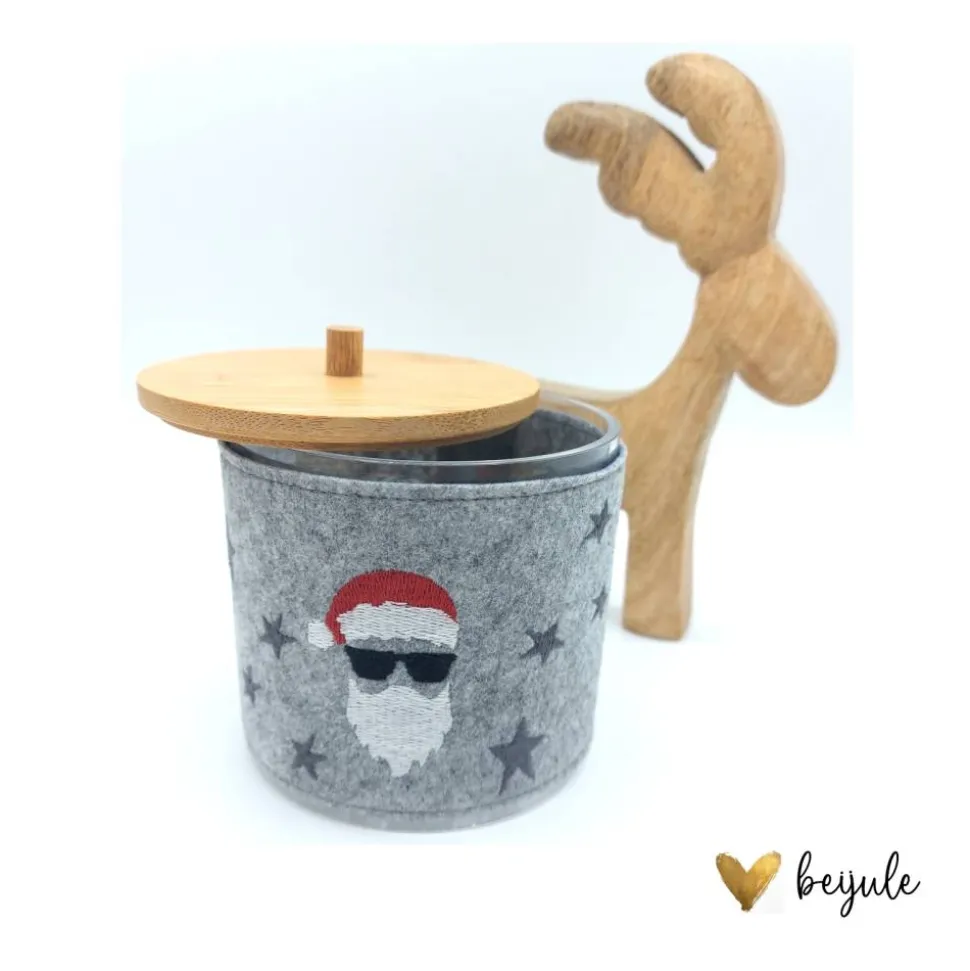 Der Weihnachtsmannkopf ist direkt auf den Filz gestickt.