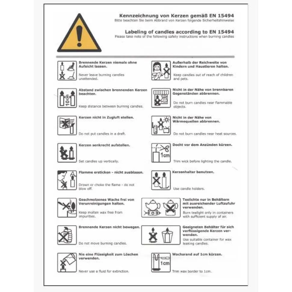 Brennende Kerzen nie unbeaufsichtigt lassen.